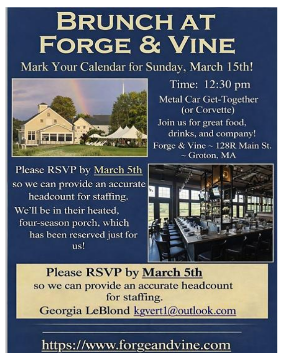 Forge and Vine, Groton MA, join us for brunch, March 15th, 2026